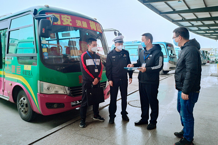 驻市公安局纪检监察组干部在市客运中心监督检查春运安全责任落实情况