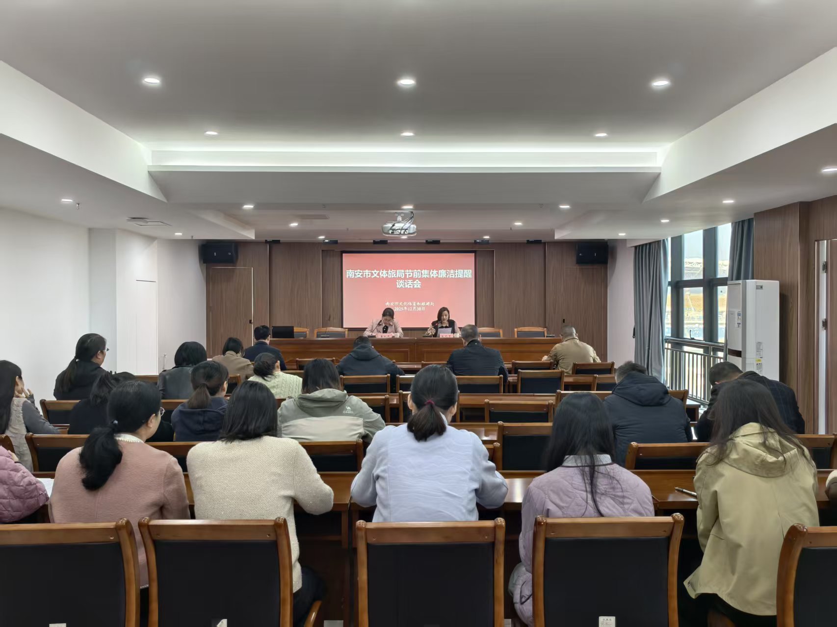 驻市文体旅局纪检监察组召开节前集体廉洁提醒谈话会,教育引导党员干部增强纪律意识,自觉抵制不良风气。
